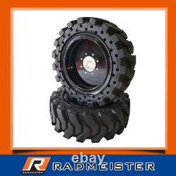 Replaceable rims (come in black color). Fits the following popular machines. BOBCAT - 843, 853, 863, 873, 883, S220, S250, S300, S590, S595, S630, S650 CASE - 430, 440, 450, 465, 60XT, 70XT, 75XT, 85XT, 95XT, 1845B, 1845C, SR200, SR220, SV300 CATERPILLAR - 236, 242B, 246, 246B, 246C, 248, 252, 252B, 256C, 262, 262D, 272C, 272D GEHL - 4640, 4835, 4840, 5240 TURBO, 5625, 5640, 6625, 6635, 6640, R190, R220, V270, V330 JCB - 190, 260, 280, 300, 1110 JOHN DEERE - 320, 320D, 324E, 325, 326D, 8875 KOMATSU - SK 815, SK 1020, SK 1020-5, SK 1026 MUSTANG - 552, 960, 2056, 2060, 2066, 2070, 2076, 2086 NEW HOLLAND - 865, 885, L175, L185, L225, L784, L785, LS180, LS185B and many others. We have tires for almost all makes of skid steer loaders including - Bobcat, Case, Caterpillar, Daewoo, GEHL, JCB, John Deere, Komatsu, New Holland and others. Get more work finished on time without costly interruptions for flat tire replacements.