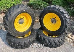 We also have other rim colors, offsets, and lug configurations available. Please inquire if interested in these tires mounted on different wheels. SKID STEER / TRACTOR / IMPLEMENT TIRES. SKS-1 has been designed as an off-road economy tire; popular standard R-4 tread pattern design. Directional and self-clean out tread design for an improved traction performance.Classic tread pattern suitable for the most popular use. Tapering tread increases in depth to the outside edge. Suitable for a wide variety of applications. WE ALSO HAVE DIFFERENT STYLES OF HEAVY DUTY TIRES IN STOCK, PLEASE INQUIRE IF INTERESTED. These rims are 8 lug with a 6" center hole and 8" lug pattern.