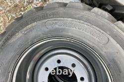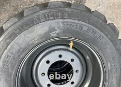 SET of 4 NEW 12X16.5 HD FORERUNNER SKS-8 Skid Steer Tires & Wheels - 14 PLY REVERSIBLE WHEELS WITH VALVE STEMS ON BOTH SIDES. This is one complete set of 4 tires mounted on gray rims for New Holland, Case & more. Ready to put on your machine & go! For New Holland L318, L320, L321, L328, L185, L190, L175, L221, L223, L225, L230, 783, 785, LX865, LX885, LX985, LS180, LS185, LS190, L180, Case SR210, SR240, SR270, 1845, 1845B, 1845C, 430, 435, 440, 450, 465, SR175, SR210, SR220, SR240, SR270, SV185, SV280, SV340, 60XT, 70XT, 75XT, 85XT, 90XT, 95XT and will also fit many other machines. We also have other rim colors, offsets, and lug configurations available.