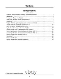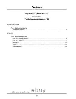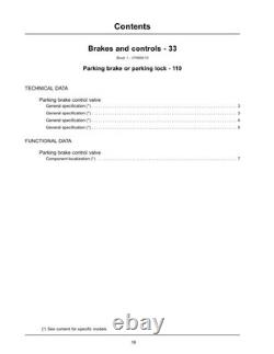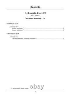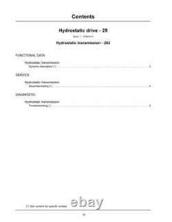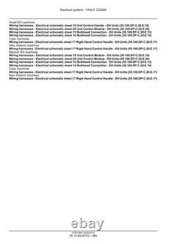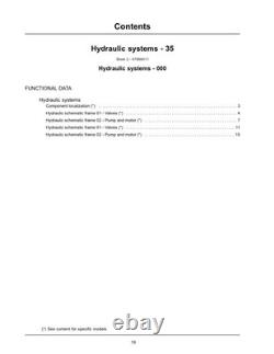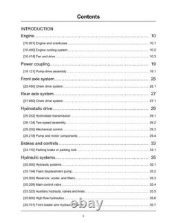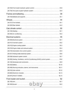 Engine intake and exhaust system - 014. Hydrostatic drive control system - 019. Parking brake electrical system - 031. Hydraulic system control - 036.